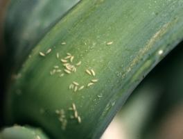 | Thrips on onion. Thrips are 1-1.5mm small. |