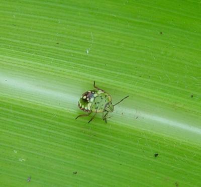 Damage by plant-feeding ladybird beetle on maize leaf. Note close-up of beetle (inset).